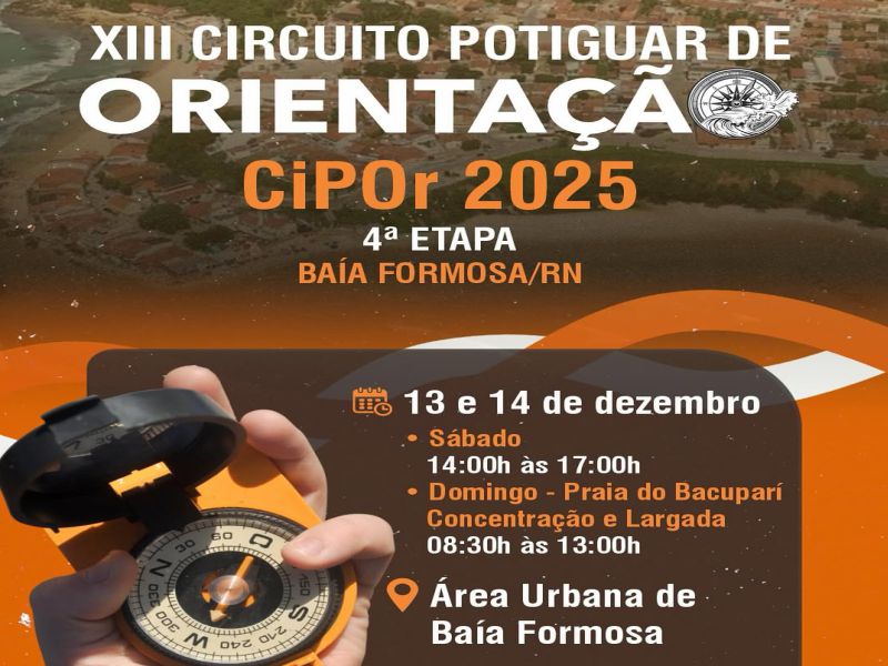 A Prefeitura Municipal de Baía Formosa, por meio da Secretaria Municipal de Esporte e Lazer (SEMEL), convida toda a população para participar e prestigiar a 4ª etapa do CiPOr 2025, que acontecerá em áreas do nosso município.